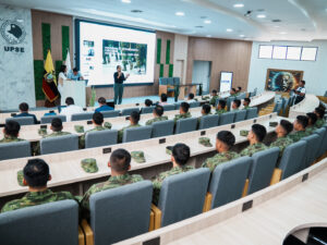 La Ph.D. Gisella Paula Chica, vicerrectora académica de la UPSE, destacó la importancia de esta alianza estratégica, resaltando que marca un hito en la historia de la universidad. “Hoy marcamos historia en esta institución. El personal militar ha decidido llevar la misma programación que nuestros docentes han desarrollado durante tres meses, bajo una planificación adaptada a sus necesidades específicas”, señaló la autoridad.